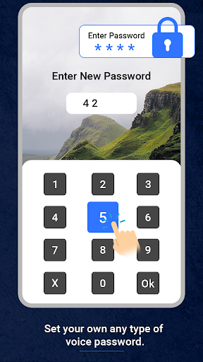 You gets totally new style lock screen just you speak your password and open your lock Anytime you change this password easily. Also you change different background for your voice lock screen.