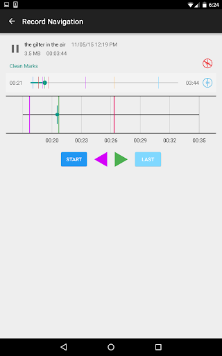 With this app you can create voice record and set lines in places are important for you and your friends. After returning to the record you can navigate to important and marked places of record in a very simple way.