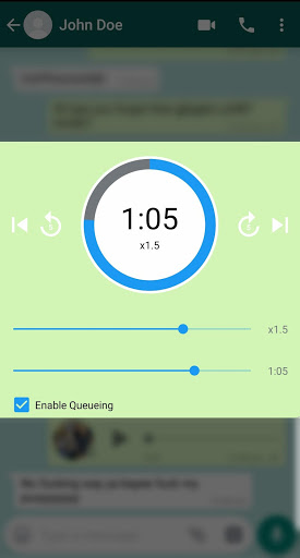 The voice message player appears over your chats and uses the same color scheme as WhatsApp for a seamless integration experience.