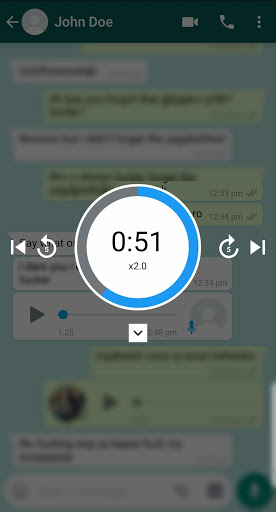 With dedicated shortcut buttons, you can easily rewind or skip 5 seconds in the voice notes.