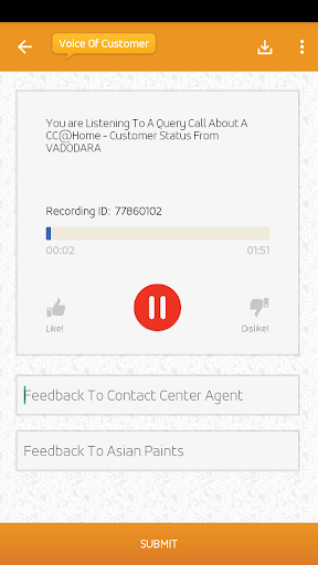 A database of voice recordings of customers with the Asian Paints Helpline staff. This database can be searched using type of call, language, line of business etc. so that the employee can listen to the type of conversation he/she desires. This will help nay and every employee be close to the end customer. Because there is no better teacher than the feedback from customers.