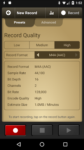 Recorded voices are in standard AAC/MP4/M4A format. Voice Record Pro can record directly in MP4 (AAC), MP3 (MPEG) and WAV (PCM) formats plus convert function for all supported formats.