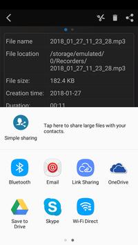 - send/share a recording via email, sms, mms, facebook, whatsapp, dropbox, etc.