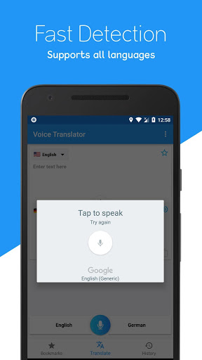 Voice Translation in this app is very quick and accurate so you can translate things in a go. Translation is also very fast and efficient you don't have to wait long for the translations.