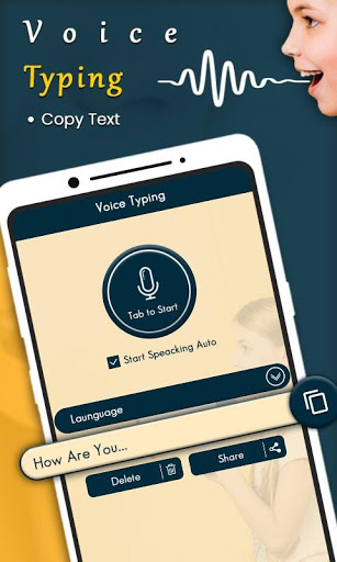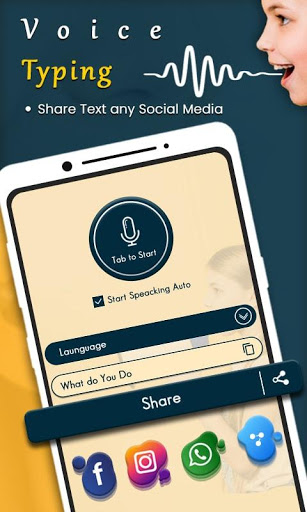 Voice typing is a simple app and user friendly application. The text appears after you done Talking. Once you get the regularity, you can use the app and send, share long texts and articles in other social media and many social media messaging application. voice typing Supports more than 70 different languages. Convert your voice into text with Voice to Text! Voice to Text allows you to share your text messages to Whatsapp.