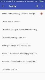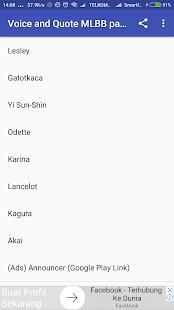 Pada aplikasi part1 ini quote dan suara hero yang tersedia adalah: