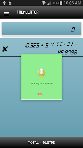 Voice calculator can calculate virtually any equation. Watch the video to learn how to use only your voice to calculate. If you get cut off mid calculation, the app will wait until you're finished. In preferences you can set on app launch to start listening to your calculation.