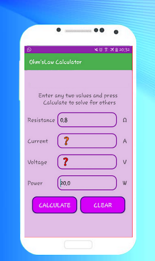 Ohms law calculator or ohm's Volt / Amp / Watt / ohm Calculator ;formulas is free and simple application basic online calculator that will caculate voltage in ( volts )resistance in ( ohm's )