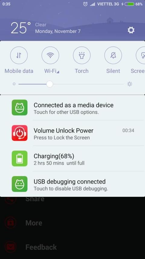 - Use icon on notification bar to lock power