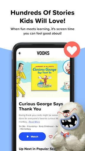 The Vooks app provides a safe, child-friendly viewing experience for all ages. Carefully selected family-friendly books that will engage and promote imagination. Ad-free, quality screen time you can feel good about.