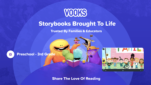 Do you have a child in Preschool - 3rd grade? Inspire a love of reading in them with Vooks. Vooks brings storybooks to life, expands vocabulary, promotes language development, and supports comprehension. Entertaining while educational, Vooks empowers families to read the recommended 20 minutes a day..