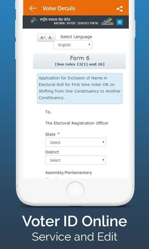 Voter ID Online is an app that helps to apply Voter ID Card Online for the first time. It has Form 6. Fill form to apply for Voter ID Card. It's simple and time saving process. If your age is 18 plus and you are Indian citizen make sure to apply Voter ID Card.