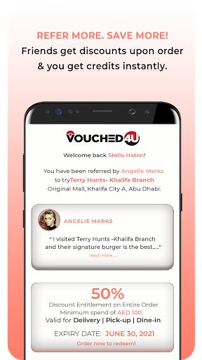 What’s cool is that both you and your friends are rewarded. Friends get discounts and you get cash credits instantly the moment your friends redeem the discount. You save with cash credit when you re-order from that restaurant next time. Each merchant agrees their own incentive package with us but discounts can go as high as 50%. Even better, Vouched4U is free to download and use.
