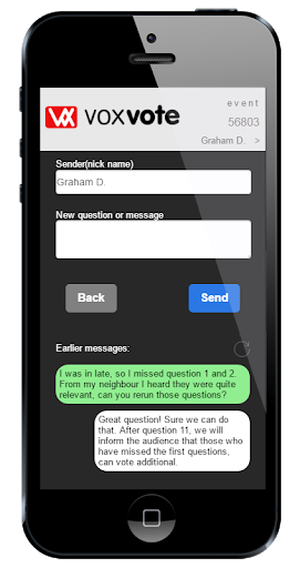 Or use the VoxVote Message function to ask questions or answer questions in real time.