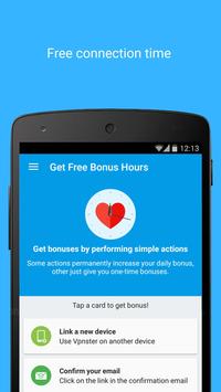 Get daily time bonuses for just using the app! Spend them on your VPN connection. You may earn more time for simple activities like social sharing, app review, app install, etc. So easy - so free!