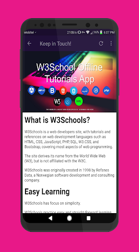 This is an Unofficial Offline Tutorials App of W3School made by a Student for the Other Students who are dreaming to become an expert in Web Developing! (No Need of an Active Internet Connection for this App).