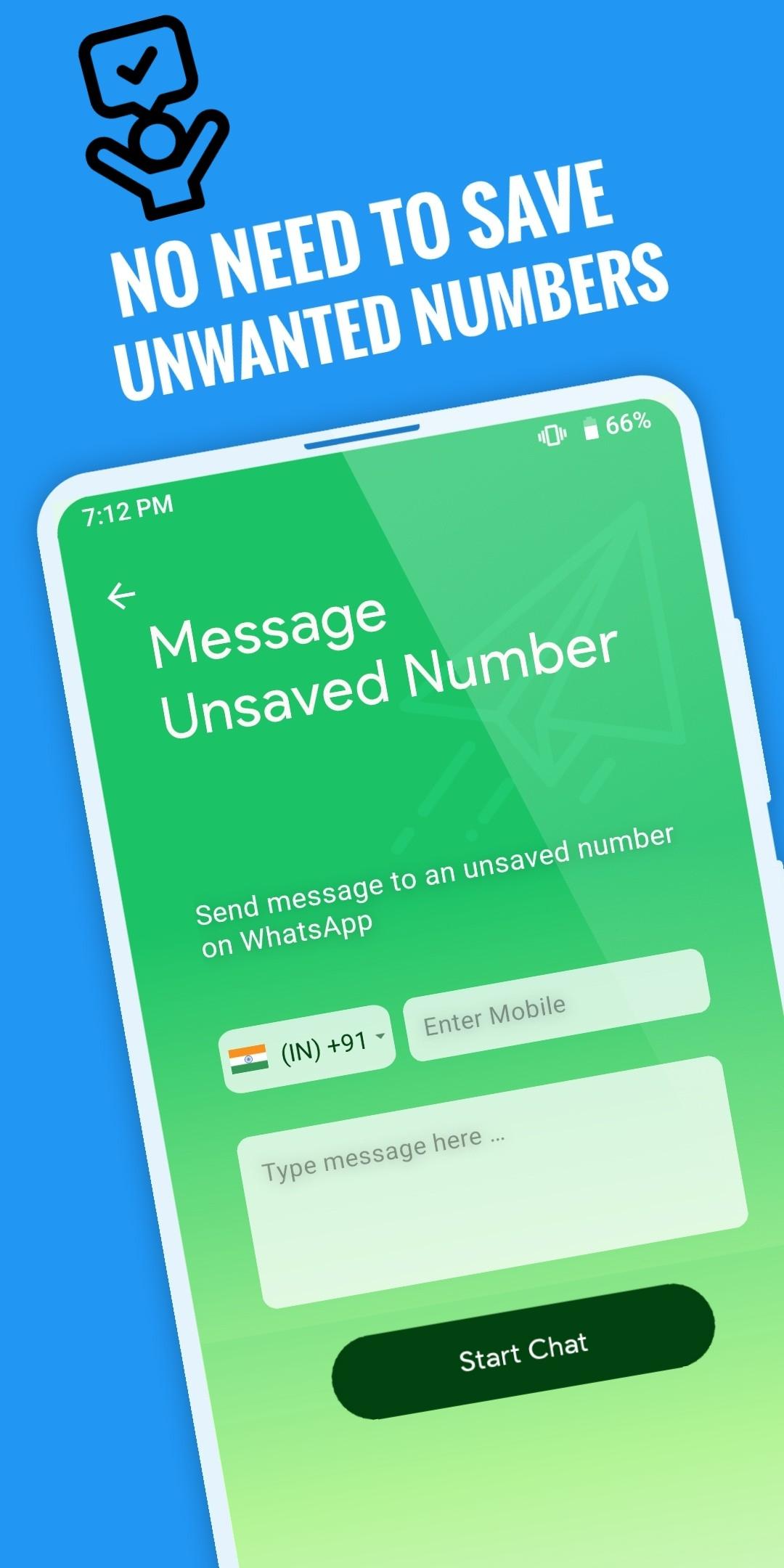 Start chatting with anyone immediately on your favourite messaging app without saving their number in your phone, this will help us save your contact lists from unwanted numbers.