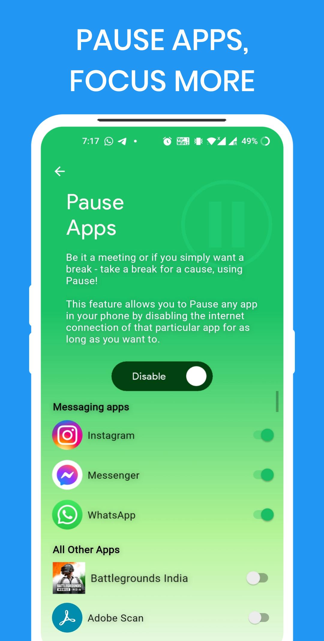 This works like a app detox to disable internet access for specific app you select, for eg social media apps while studying to boost focus and productivity. TIP: You may use this while playing online games to achieve low ping.