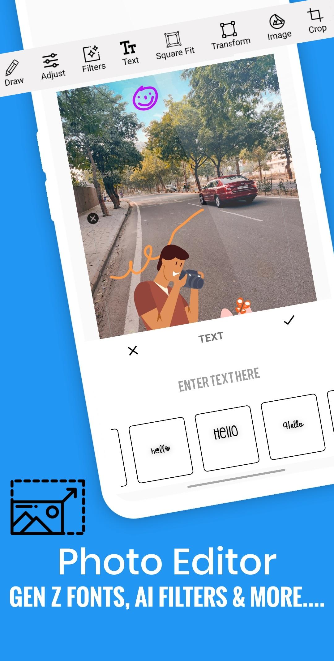 Edit your photos with AI based filters, texts, effects, and fonts to enhance your images to the next level.