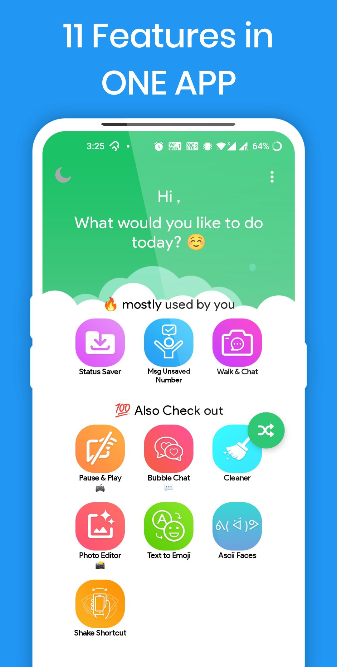This app has all the exciting daily use features that you need to enhance and level up your messaging experience on Android with this all in one App!