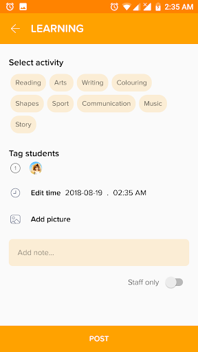 WAZZA is a web mobile platform that connects School/ pre-school teachers and parents. WAZZA provides a simple and direct user- friendly interface for teachers to provide live attendance reporting, maintain daily records, manage billing, communicate calendar activities, send announcements & receive confirmations. Image processing and artificial intelligence in the future will allow for an individualized experience for parents while leaving the teacher free to continue looking after the children.