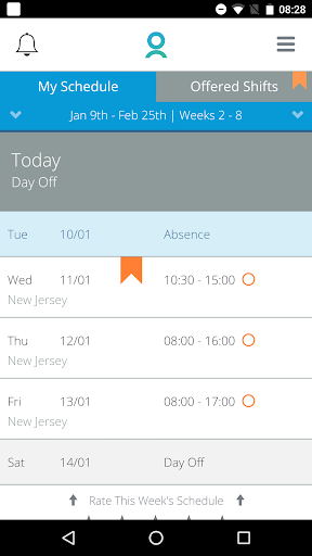 This app connects to your employer’s scheduling system so that you know when and where you are working.