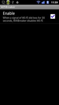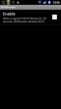 When WI-FI is cut more than 30 seconds, WIfiBreaker saves your battery by disabling WI-FI.When you use disabled WI-FI, you must enable WI-FI by manual operation.