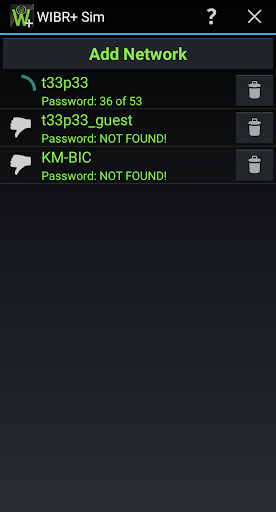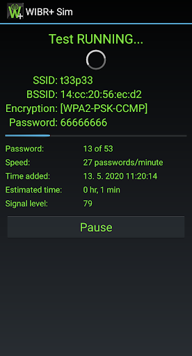 WIBR (WIfi BRuteforce) simulator is an app that simulates wifi hacking. It shows how the real attack can look like. It simulates dictionary and bruteforce wifi attacks. You can see what passwords are "tried" (it actually does not try to connect anywhere) and how long the actual attack could take. It realistically simulates the speed of attack and it also simulates finding of the password (the simulated chance is 1:1000).