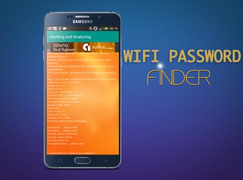 WIFI Password Finder is a PRANK and Free application created for fun purposes in order to fool your friends and neighbours about hacking and encrypting their wifi networks or routers.