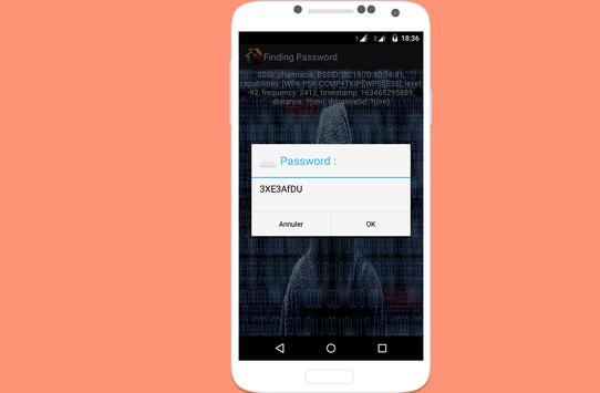 This application will show you all available wifi networks and will click on it,a real like processing will start and at the end a password will be shown.