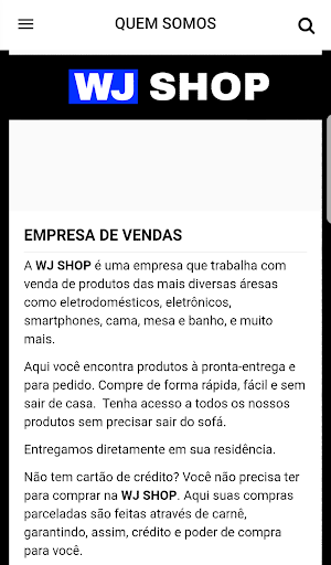 No app WJ SHOP você confere todos os produtos disponíveis, formas de pagamento, consulta seus pontos WJ SHOP FIDELIDADE e muito mais.