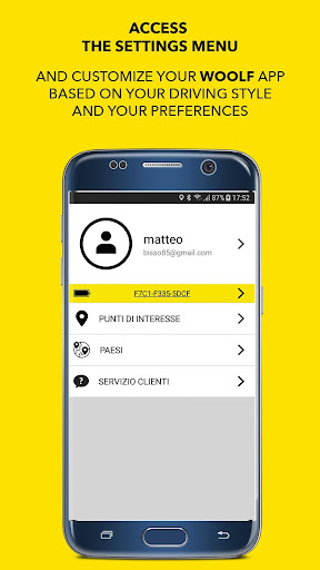 The application allows a direct interaction with your WOOLF bracelet through the transmission of useful data during your ride. You will no longer have to check out for speed cameras and hidden road signs indicating speed limits; WOOLF will do it for you, both in Italy and abroad.