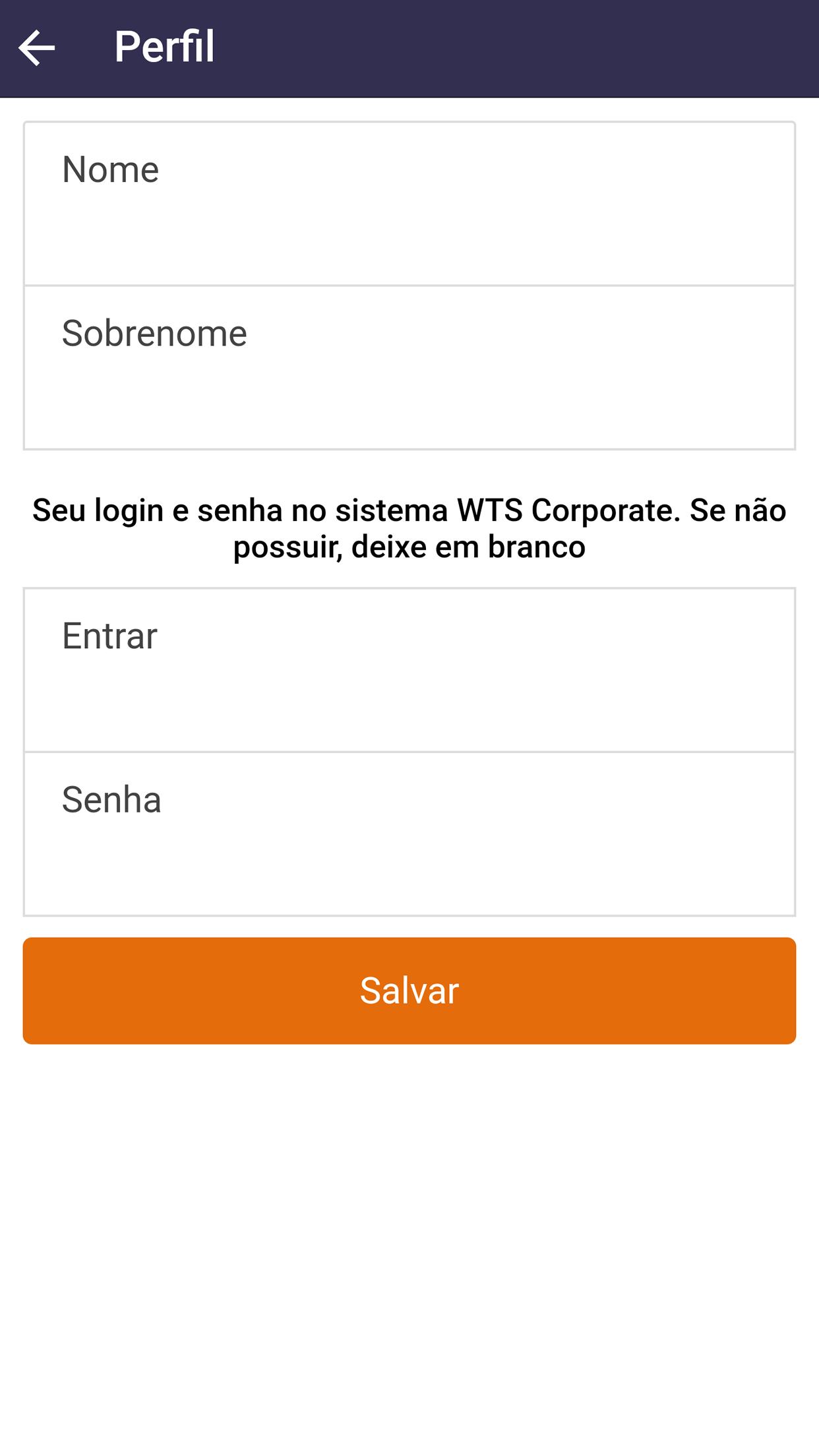 Se você cria reservas no sistema pode cadastrar seu Login e Senha no “Perfil” do APP de forma que só clicar no botão de acessar o sistema para entrar no WTS Corporate. Você terá praticamente todas as funcionalidades do sistema com um layout voltado para a exibição em dispositivos móveis.
