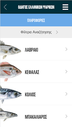 With Fish Guide App the user can either search a specific fish by name or use the search filters, which enable him to spot directly the fish species that can be consumed at a specific time period or which products come from organic farming.