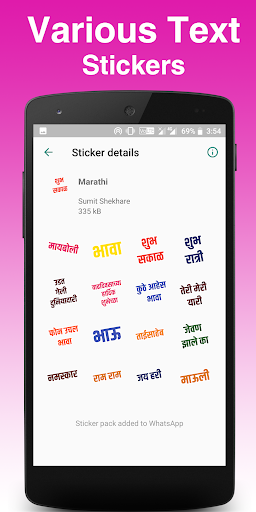 WaStickers Marathi Text Stickers app contains Variety of Marathi text Stickers such as Greetings, Festivals, Funny words.