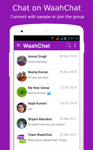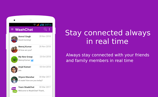 WaahChat is a free Indian chat app with better privacy, bigger group sizes and more chatting options. It lets you send free chat messages, unlimited photos, videos, audio, and voice notes to your family, friends, co-workers and others across all devices in any country and network!