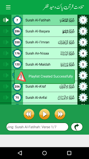 This App allows creating Multiple Play Lists of Surah, after creation load your specific playlist and listen all play list surahs continuously. Goto Ayah Allow you to Jump on specific Ayah of Selected Surah. This App work smartly to save your battery consumption, even you can listen Quran while mobile on the standby mode.
