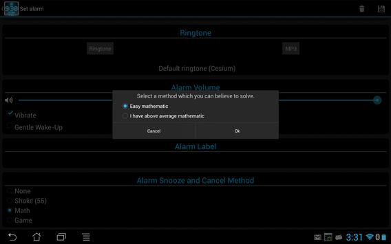 • Solve math problem to dismiss or snooze alarm clock, you can also select difficulty levels