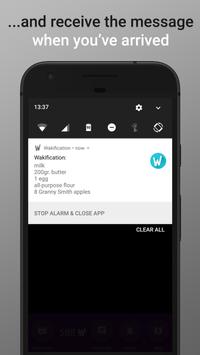 Add text to your alarm and receive this message on your lockscreen: an easy way to remember your grocery list which pops up whenever you arrive at your destination.