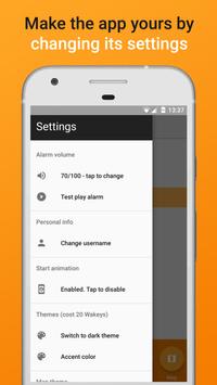 Wakification is changeable to your own, personal flavor. Change its theme and choose from a variety of colors. Change the volume of the alarms or choose for a vibrating alarm only.