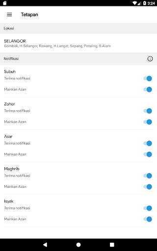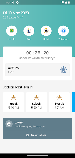 Among the functions performed by the Waktu Solat (Prayer Time) app: