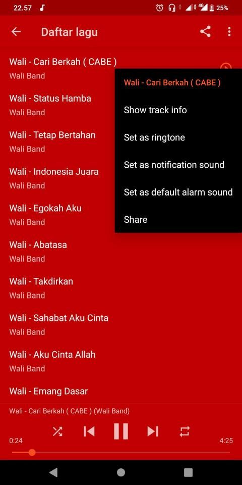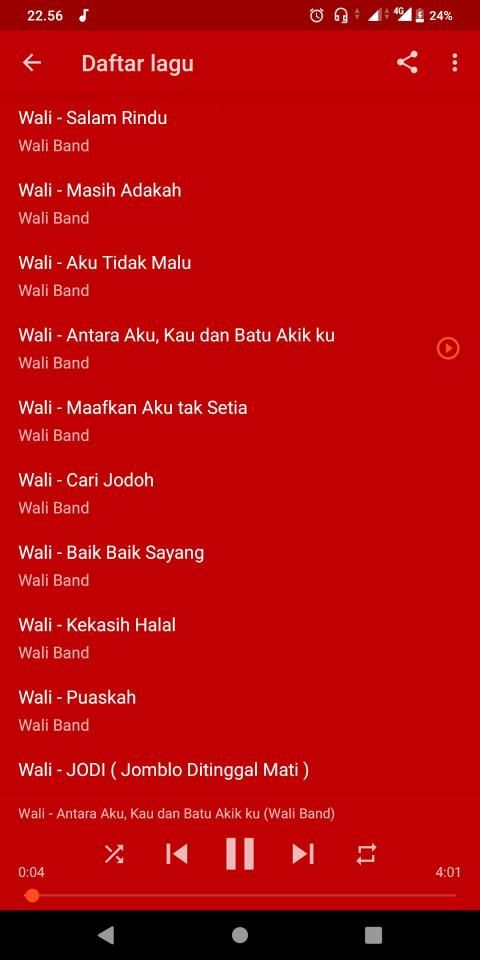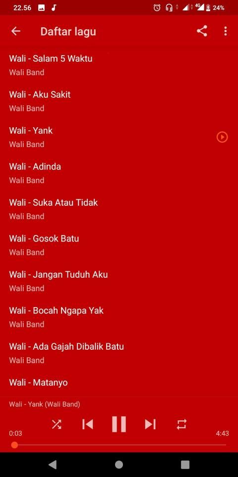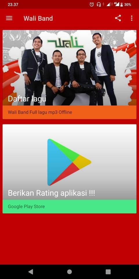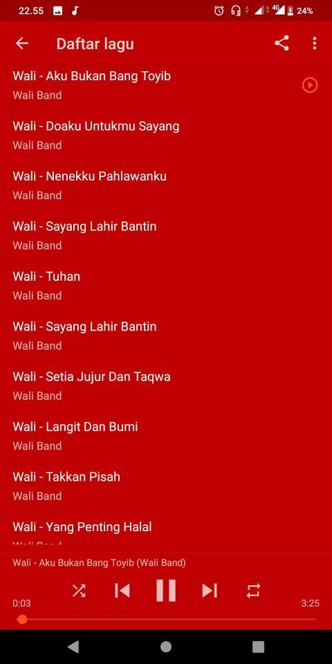 Aplikasi musik dengan suara jernih dan lagu lagu pilihan terbaik dari band wali tanpa harus menggunakan internet atau download