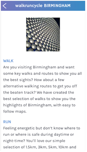 Our app of self-guided walking, running and cycling routes is all you will need to see the very best of Birmingham. All the routes in our apps have been created by real people, on the ground, who know the city inside out. We've walked, run or cycled up and down checking out every possible route for you - we don't just string together the 5 main sights and the shortest route between them. After all, where's the fun in that! We take you down the prettiest, most interesting streets instead - which might be slightly longer, but a lot more pleasant!