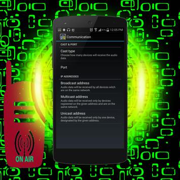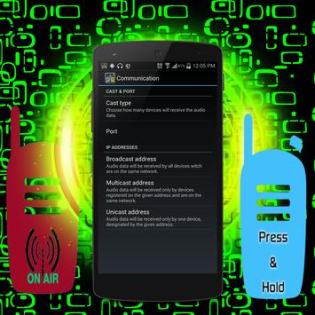 With this application, you can transmit your voice data to all devices which are on the same network or to any device which you know its IP address.
