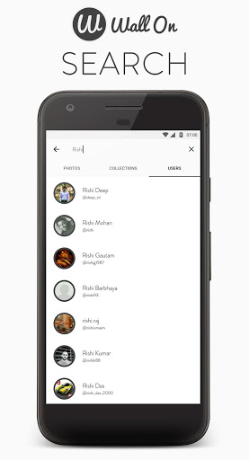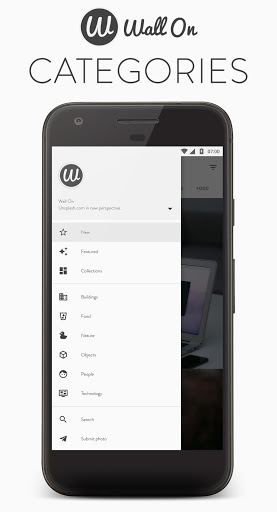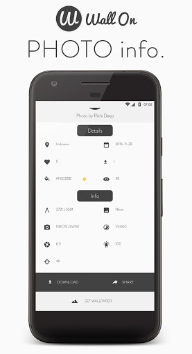 Wall On is developed/designed by keeping all Google's new material design principles and API guides. Unsplash API is the most powerful photo engine in the world. By using the API, the app creates the largest collection of high-quality photographs. For free.
