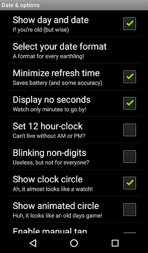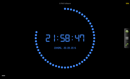 AndTheClock is a simple live wallpaper app, which can be easily adapted to your own requirements and personal taste. It shows the actual time in a digital presentation and shows the running seconds in a circle around it. It displays the time as what we call a studio clock.