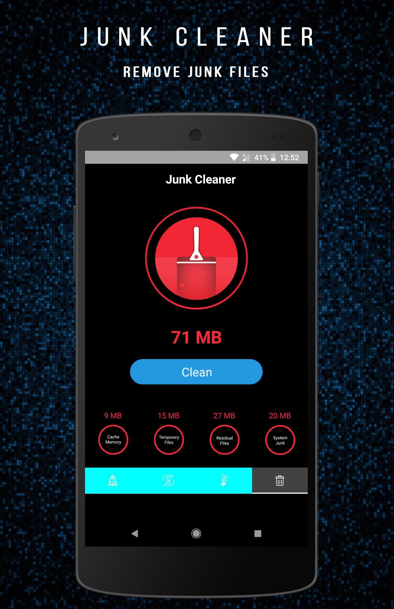 ✔ Junk Cleaner: Intelligently scan and remove junk files including system and app caches. Clean junk files, free up RAM in ONE TAP!