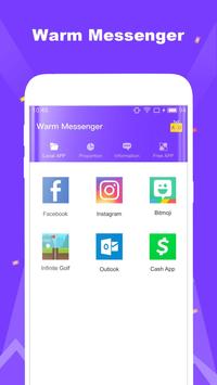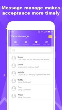 Warm Messenger is designed for message managing through all social apps,beautiful and responsive material design,reply or delete text without leaving what you are doing in specific app