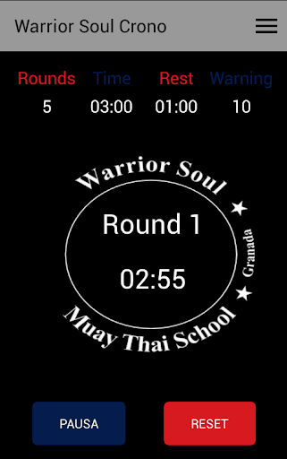 Muay Thai timer. Allows to set number of rounds, time, rest and warning. Also includes the music so you can easily play it during the rounds.