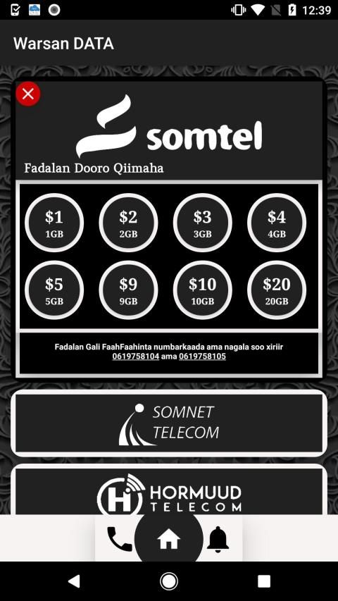 Adeega Warsan DATA waa adeeg aad ka Dalban kartid Data raqiis ah sida SOMTEL,somnet , HORMUUD